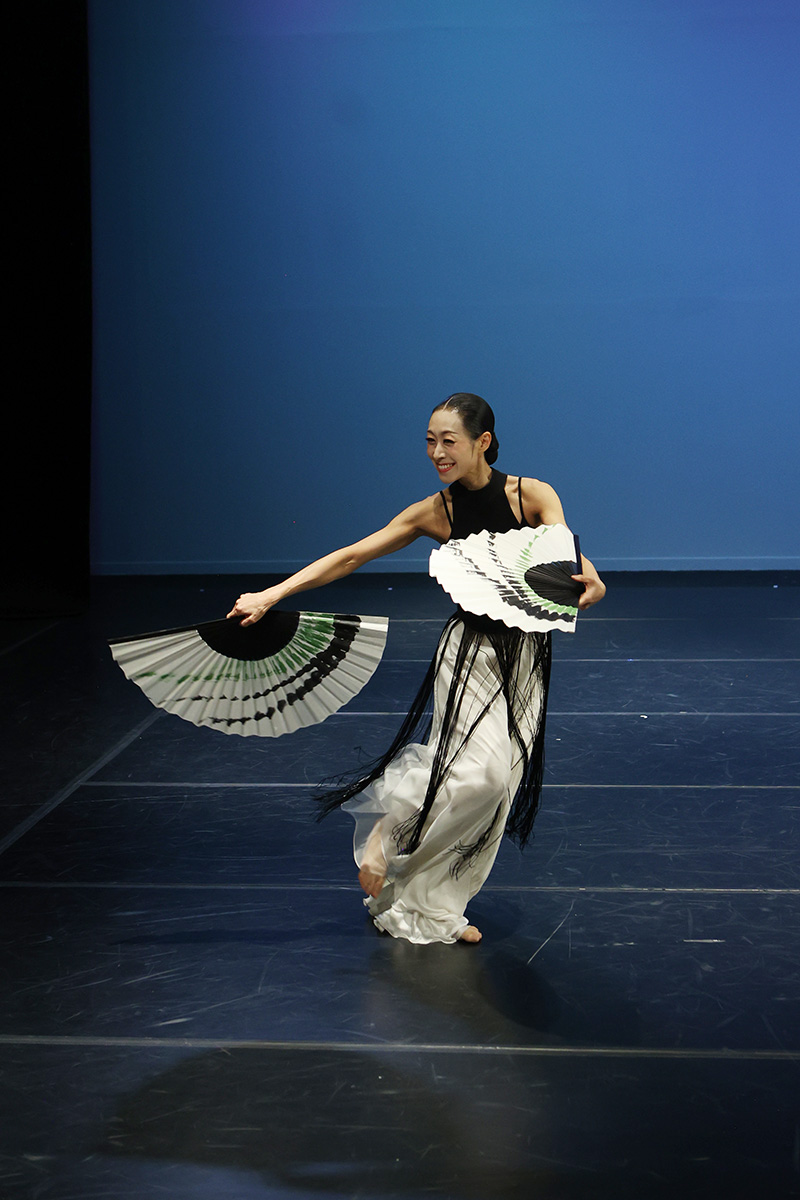 새소리와 계곡 물소리로 시작하는 무대에 풀잎 하나가 날아들었다. 바람 따라 휘몰아치는 부채는 비어 있는 무대를 장식한다. 무용수가 부채를 펼치면 무대 위 에너지가 만개하고, 부채를 접으면 온전히 엄선민의 움직임만이 빛난다.